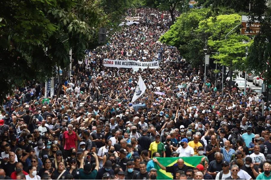 Manifestações contra Romeu Zema, primeiro para reivindicar o respeito do governo que ele dirige aos policiais civis de Minas Gerais, que há mais de cinco anos não recebem as compensações para reparação dos desgastes de seus vencimentos pela inflação oficial.
