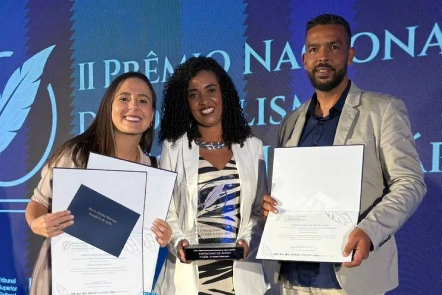 As jornalistas Aline Diniz e Tatiana Lagoa receberam, das mãos do ministro Luiz Roberto Barroso, presidente do Supremo Tribunal Federal, o prêmio destinado aos trabalhos de Direitos Humanos, Cidadania e Meio Ambiente, pela série de matérias GRADES INVISÍVEIS, veiculada pelo jornal O TEMPO; também foram agraciados o repórter fotográfico Frederico Magno Machado da Silva, que trabalhou nas mesmas reportagens.