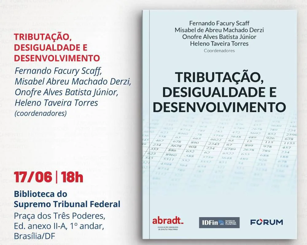 O Supremo Tribunal Federal (STF) acolherá nesta terça-feira (17), na Biblioteca do anexo II-A, em Brasília, os juristas mineiros Misabel Derzi e Onofre Alves Batista Júnior, ambos doutores em Direito e professores da Universidade Federal de MG, e os seus colegas paulistas, também juristas e professores da USP, Fernando Facury Scaff e Heleno Taveira Torres, como coordenadores da obra Tributação, Desigualdade e Desenvolvimento, da Editora Fórum.